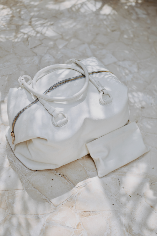 "Since we stuck close by the Harmony Hotel on this trip, we chose to bring along our Alexis travel pouch and Ava Duffel in Pearl. A companion to our larger Clarita and Ava travel duffels, the Alexis is versatile and holds all of our essentials while packed away and can double as a clutch as we are out and about."