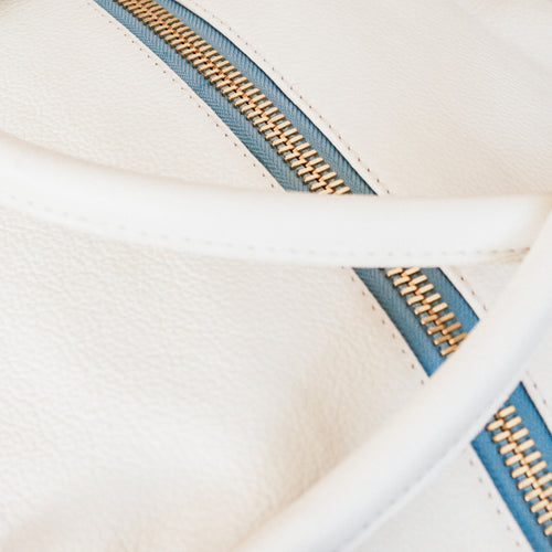 Every Ava is finished with Capricho’s signature zipper. A luxury zipper with our trademark blue ribbon and oversized matte gold pull adorns the exterior and interior of each bag. Intentionally designed without a visible label, the Capricho zipper is our understated calling card. It doesn’t ask for attention yet announces its arrival subtly and piques interest. A travel piece that quietly makes a statement, worthy of the investment.